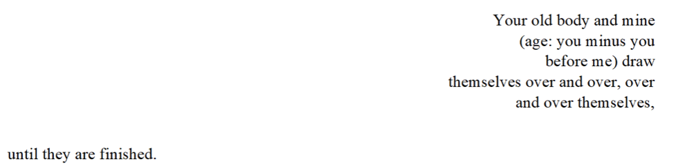 Are we continuous? Are we ever complete? (“There is nothing better,/ I assure you/ than to be complete.”) to look after and use is Leah Falk’s masterful encounter with a man’s great mind and greater suffering, bequeathed in writing to a mother who wrote him. Such vibrant work chimes with one of the best, most resonant, most joyful utterances in this book: “The machine’s behavior” — the machine we are and the machine we make, child, poem, computer — “is play.”